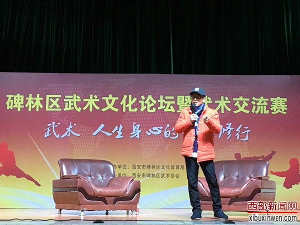碑林区文化体育局局长周琦随后做了热情洋溢的讲话,他高度肯定了碑林区武术协会成立一年来所做的工作和取得的成绩,碑林区武术协会自2017年6月成立,先后举办了多次武术活动,参与了多项武术比赛,并且取得了优异的成绩。他指出,这次论坛活动注重文化熏陶和实战养成,把强身健体的思想理念、价值标准、审美风范转化为人民的精神需求和行为习惯,不断增强人民群众的参与感、获得感、认同感,形成积极向上的社会风尚。他希望,碑林武术协会要发挥好作用,多组织此类文化体育活动,尤其是在春节来临之际,丰富群众生活,营造喜庆祥和的节日氛围,依托碑林区文化底蕴深厚,文化资源丰富的优势,加强与群众的联系,提升武术文化知名度,助推碑林区武术文化事业发展。