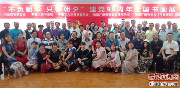 值此中国共产党建党99周年之际由党政周刊杂志社、陕西人民书画院、中国实力派书画家协会、陕西广播电视台视界观杂志、陕西广播电视台《今日西部》栏目联合主办,“不负韶华只争朝夕”建党99周年全国书画展组委会、西安同昌昱文化传播有限公司承办。陕西奥腾广告装饰有限公司、陕西前进文化传媒有限公司、陕西双鹰物业管理有限公司协办。