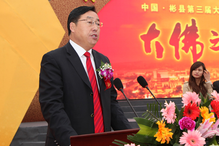 市委常委、宣传部部长唐利如在讲话中说,彬县大佛作为第一次“西学东进”的见证,在中国的历史和文化当中起着重要的作用,今天举办中国•彬县第三届大佛旅游节,其宗旨就是要弘扬传统文化,大力发展文化产业,为经济发展和社会进步做出更大的贡献。