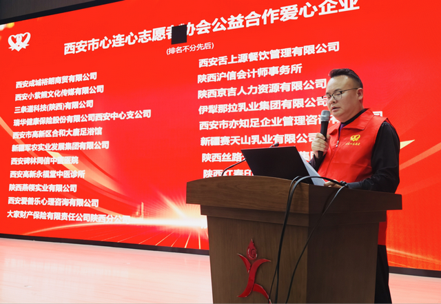 协会常务副会长朱长江向长期关心支持协会公益事业的爱心企业表示衷心感谢,并对深化合作、共担社会责任提出期望,希望社会各界携手同行,共同推动志愿服务事业持续健康发展。