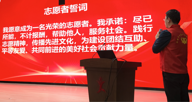 座谈会最后,协会秘书长王锦带领全体志愿者重温志愿者誓词,进一步坚定服务信念,凝聚志愿力量,展现新时代志愿者的责任与担当。