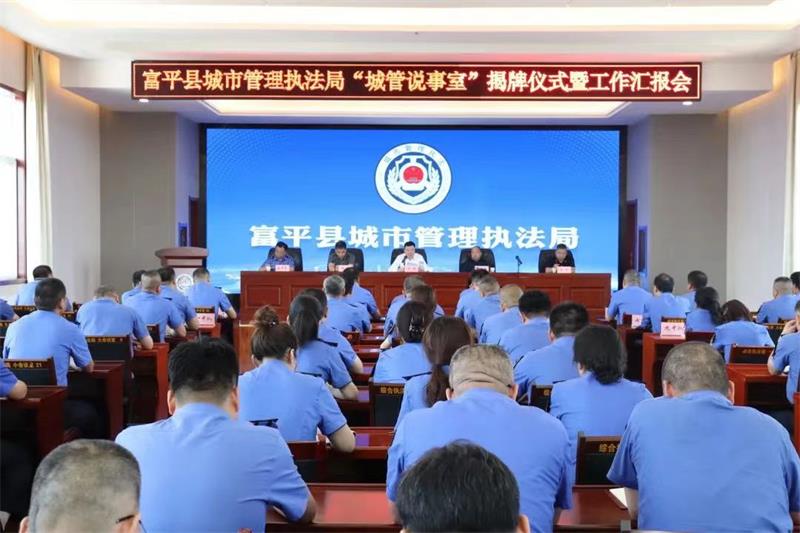在召开的工作汇报会上,局主要负责同志汇报了近期工作开展情况,县委副书记、政法委书记亢鹏同志结合说事室揭牌强调:”城管说事室”的设立是新时代社会治理的发展需要、是“我为群众办实事”的具体实践、是干部作风能力提升年的贯彻落实、是新时期城管队伍建设的必然要求。全体执法人员要以“城管说事室”为抓手,最大限度把矛盾纠纷防范在源头、化解在萌芽状态,全面推进城管执法领域社会治理工作提质增效,努力将“城管说事室”打造成全市树标杆、全省创一流、全国有影响的“富平经验”。